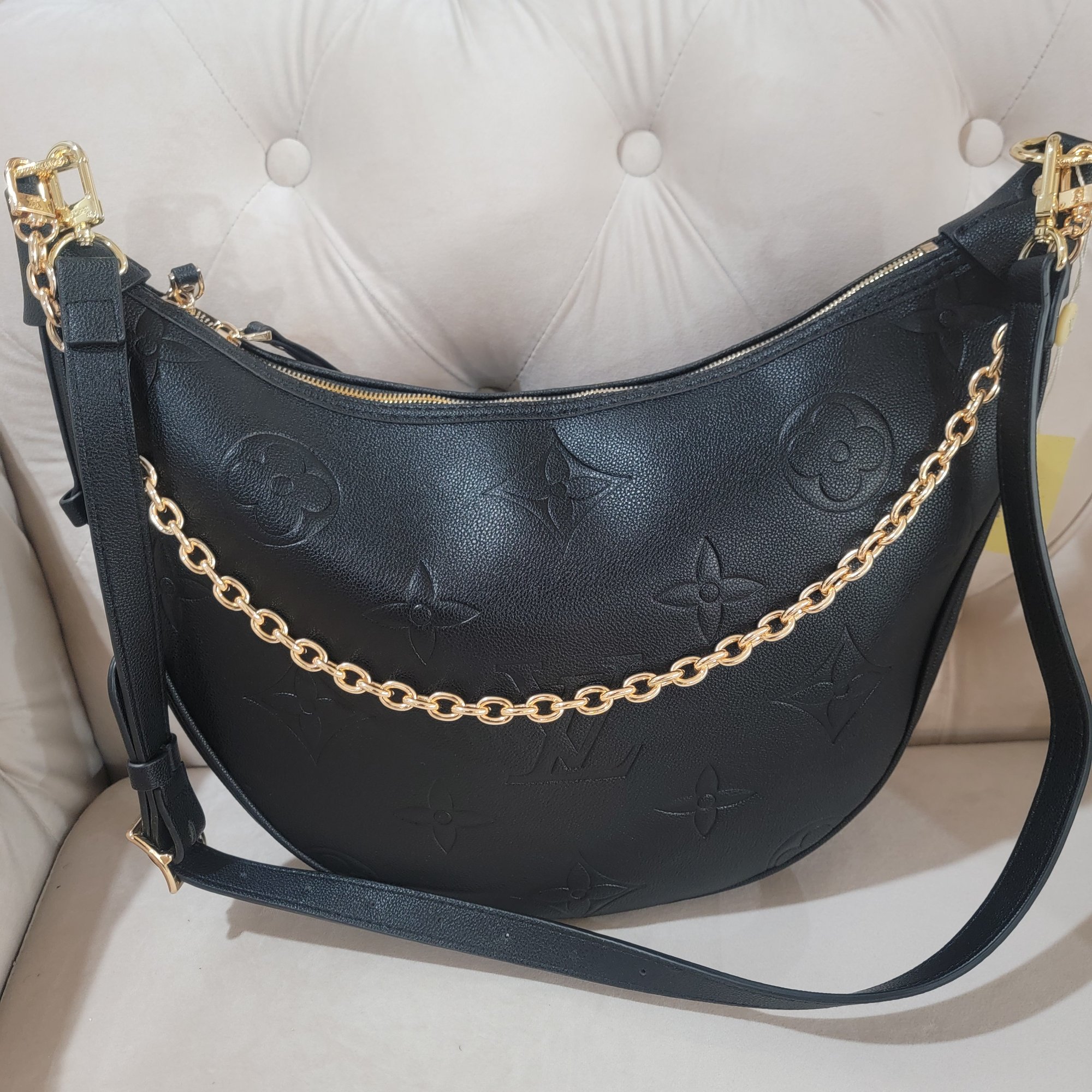 17 by 13 inches. Gold hardware. Zip up hobo. Allow 2-5 business days for delivery